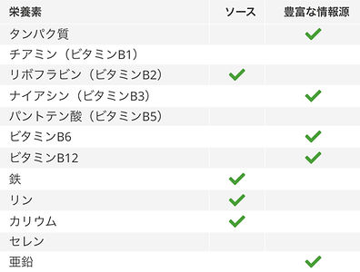 例:ビタミンB6、ビタミンB12、鉄(牛肉)、亜鉛、セレン(豚肉)。